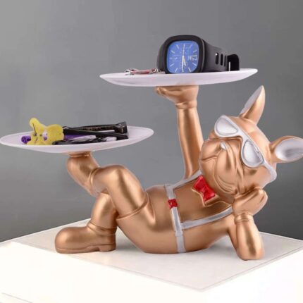 This stylish dog showpiece with a plate enhances any space. Ideal for kitchens, bedrooms, offices, or dining tables, adding charm and functionality to your décor.