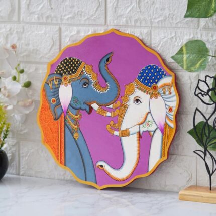 Featuring a stunning Pichwai painting of two elephants on a purple plate, this leather diary blends tradition with elegance. Ideal for journaling, gifting, or personal use.