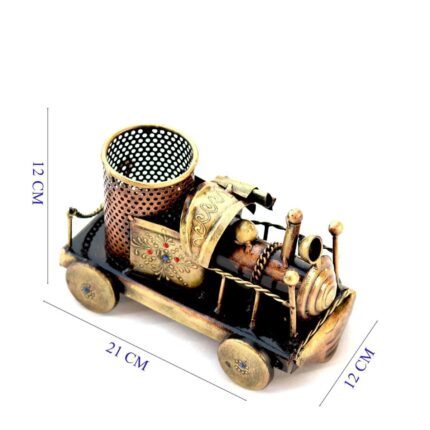 This unique brass train pen holder combines functionality with vintage charm, making it a perfect desk organizer and an elegant addition to your home or office décor.